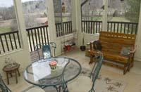 The screened- in sunroom has a tremendous view of the rolling hills, mature trees and wonderful wildlife.